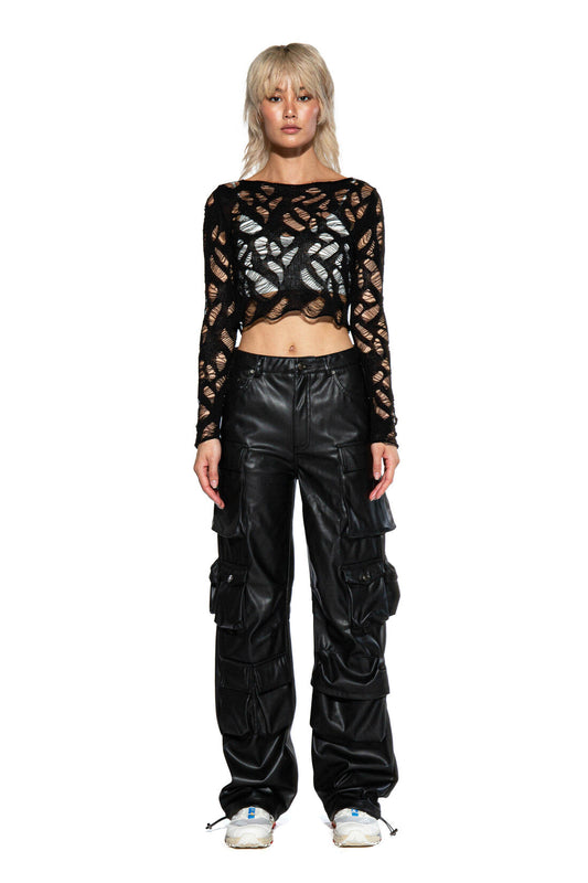 SHREDDED KNIT SWEATER SLEEVELESS CROP TOP