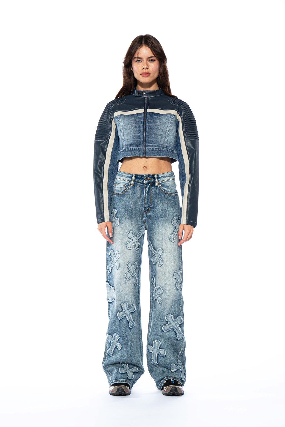 Cross Patch Straight Leg Jean